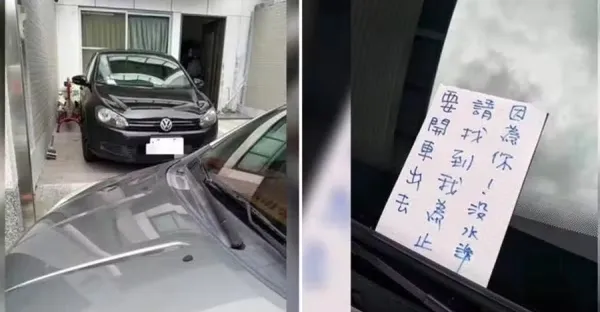 自私車主將車停在「他人家車庫」自己去台北遊玩,女屋主無奈直接將出口關閉,並留下字條:你等我歸國再走吧