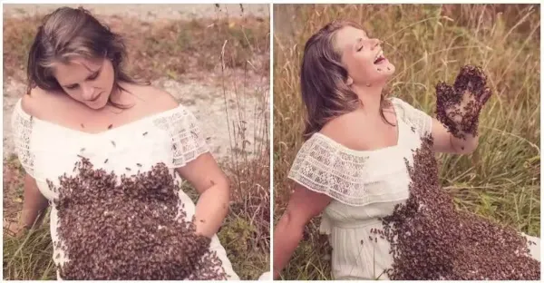 「讓2萬隻蜜蜂爬滿孕肚」拍獨特孕婦寫真!預產期前6天「寶寶卻不動了」:只被螫3次...