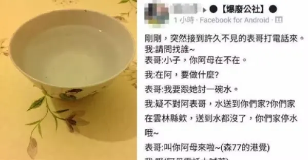 雲林表哥突然打來說:想討一碗水,媽媽瞬間臉色凝重,他好奇上網發問背後意義,網友:請節哀