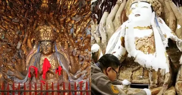 800年千手觀音像出現「破損」!工人修復時意外觸發機關 打開後「發現驚天秘密」在場人都沸騰