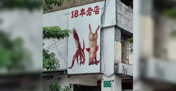 是在賣什麼?廣告招牌畫「倒立豬+魷魚」他滿頭問號 在地人解答超好吃「不只開18年了」
