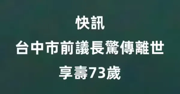 快訊/ 台中市前議長驚傳離世 享壽73歲!