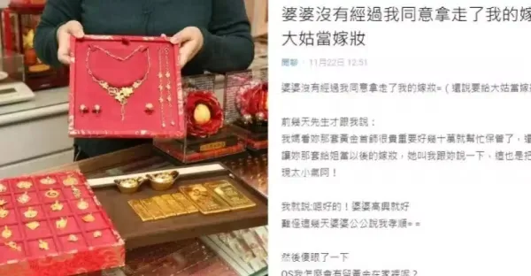 婆婆隨意拿走金飾, 要老公轉告「給大姑當嫁妝,別計較太多」她一聽愣住「房間沒有黃金啊」