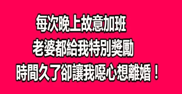 每次晚上故意加班,老婆都給我特別獎勵,時間久了卻讓我噁心想失婚
