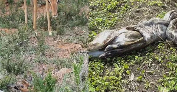 羚羊寶寶親眼目睹巨蟒吞母羚羊,眼看媽媽被吃的只剩後腿