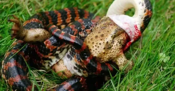 赤鏈蛇遇上癩蛤蟆,貼身肉搏近5小時,反被蛤蟆功耗盡了力氣