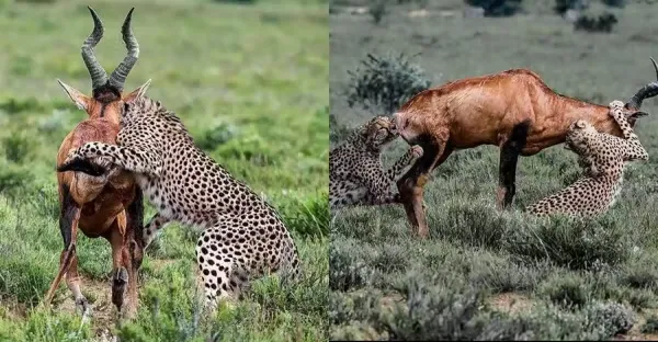 最猛公羚羊極限反擊,一對二花豹毫不示弱,撕掉豹皮嚇跑花豹
