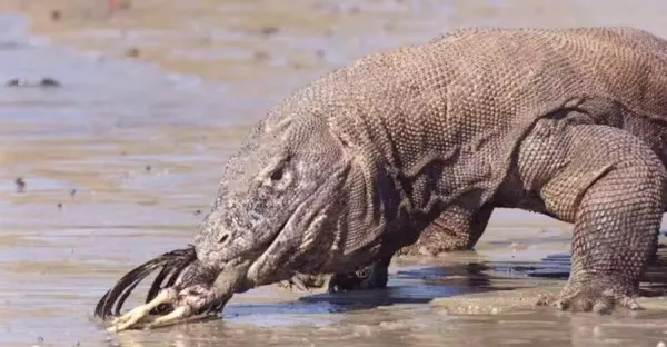 猴子偷吃科摩多巨蜥的蛋,結果被科摩多巨蜥整吞,鏡頭拍下全過程