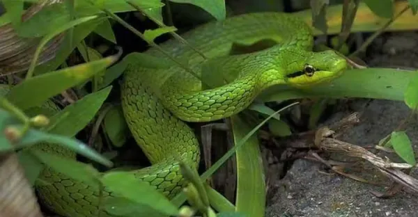 森林眼鏡蛇在非洲橫行霸道,吃完綠曼巴蛇,接著吃非洲岩蟒