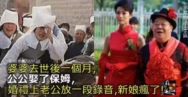 婆婆去世後一個月後, 公公娶了保姆!婚禮上老公放一段錄音,新娘當場瘋了