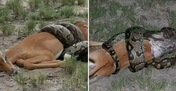 非洲巨蟒緊纏成年公羚羊,等待獵物在絕望中停止反抗,血吞2小時只剩下羚羊蹄