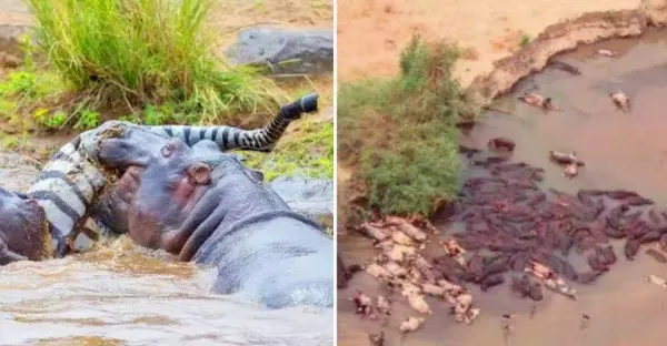 「食草動物可以吃肉嗎」? 河馬試了一下,結果全軍覆沒 ,漂滿河岸!
