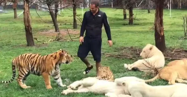 豹子背後偷襲飼養員,老虎上去就是一耳光:你把他吃了誰養我!