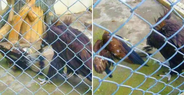 禿鷲金雕「誤放同一籠中」,金雕被撲倒「瘋狂撕咬」,趴在地上成這模樣:雕兄太慘了!
