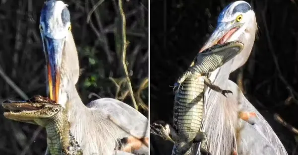 鱷魚被蒼鷺囫圇吃下,整整掙扎了25分鐘,生命還有多少奇跡?