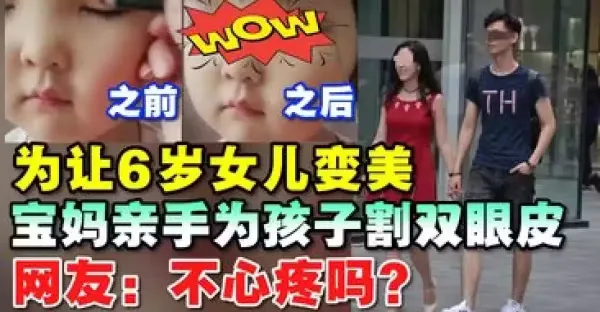 讓6歲女兒變美,寶媽親手為孩子割雙眼皮,網友:不心疼嗎