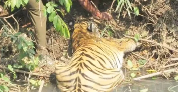 男子發現一老虎在河邊喝水,好久都沒動靜,大膽走近不淡定了