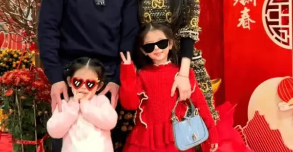 郭富城老婆曬全家福,夫妻站一起如父女,倆女兒一個隨爸一個隨媽_方媛_孩子_生活
