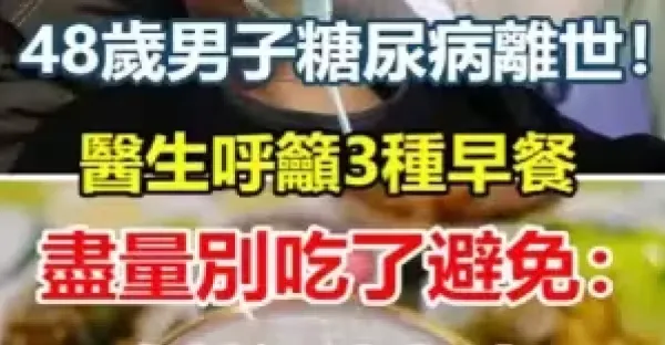 48歲男子糖尿病離世!醫生呼籲「三種早餐」儘量別吃了 避免:血糖迅速上升!