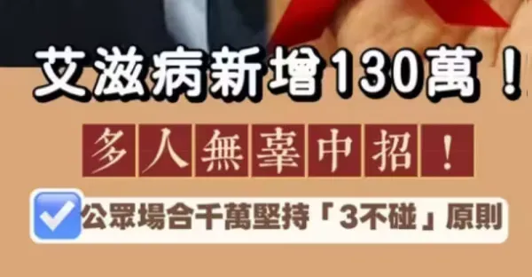 愛滋病新增130多萬!多人無辜中招 公眾場合千萬堅持「3不碰」原則