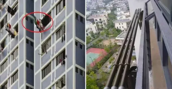 剛才發現一戶人家晾衣,做法簡直高明,拍下給大家瞧瞧,太新潮了