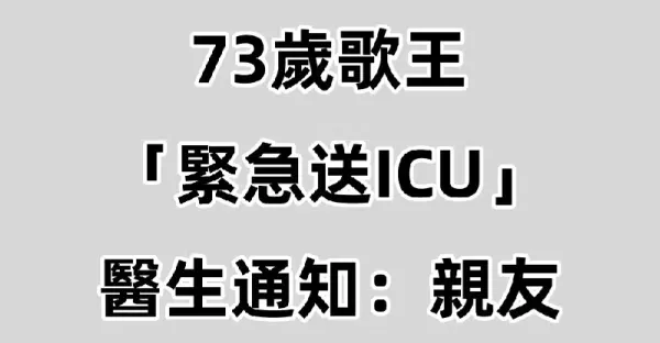 深夜快訊/73歲歌王「緊急送ICU」醫生通知:親友儘快見最後一面...