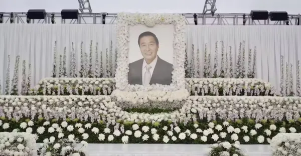 李兆基葬禮鋪滿白花,倆兒子哀傷迎客,靈堂地下設佛壇請高僧誦經