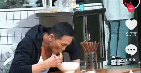 57歲知名動作明星路邊攤吃面無人識,餓到狼吞虎咽,青筋直冒