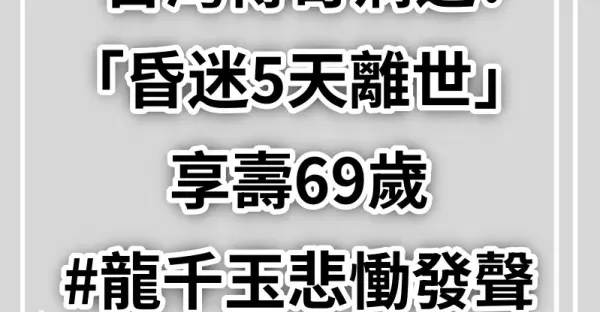 台灣傳奇病逝!驚傳「昏迷5天離世」享壽69歲 #龍千玉悲慟發聲...