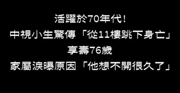 活躍於70年代!中視小生驚傳「從11樓跳下身亡」享壽76歲 家屬淚曝原因「他想不開很久了...」