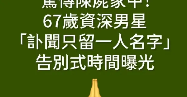 驚傳陳屍家中!67歲資深男星「訃聞只留一人名字」...告別式時間曝光!