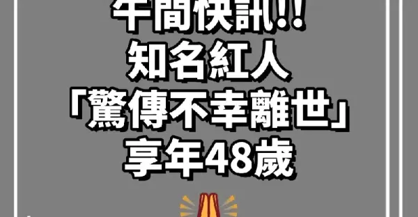 午間快訊!知名紅人「驚傳不幸離世」享年48歲!