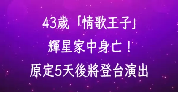 43歲「情歌王子」輝星陳屍家中! 原定5天後將登台演出!