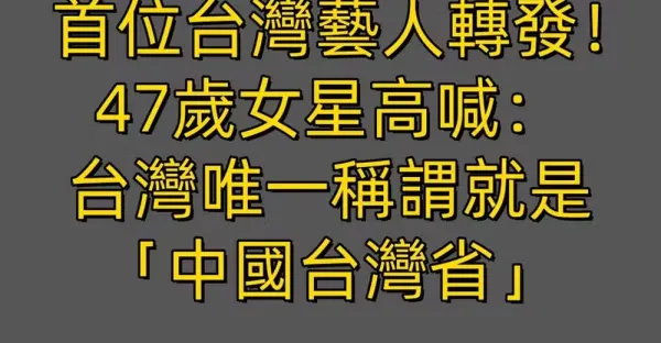 首位台灣藝人轉發!47歲女星高喊:台灣唯一稱謂就是「台灣」