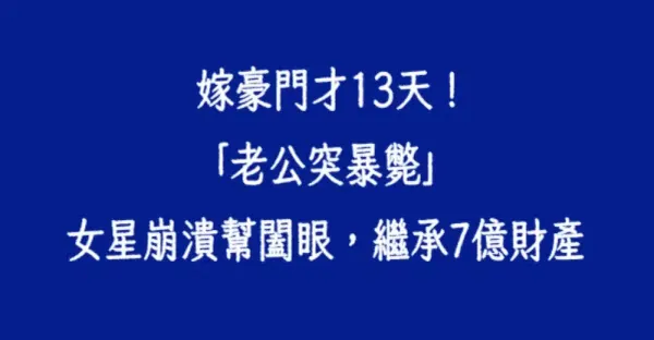 嫁豪門才13天!「老公突暴斃」女星崩潰幫闔眼 繼承7億財產
