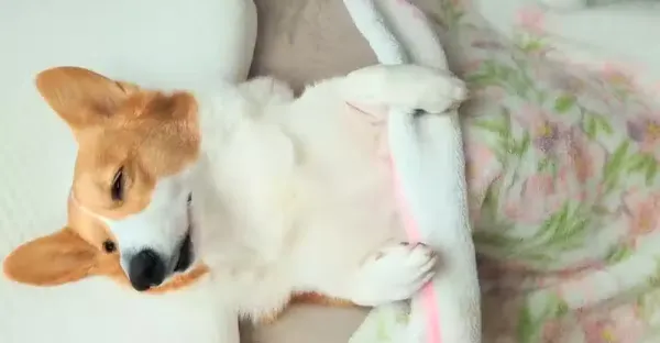網友拍下《剛睡醒的柯基犬》腿短狗狗想要伸展一下的動作太可愛惹