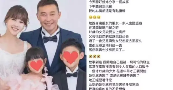 全家出國旅遊「12歲女兒去廁所再也沒回來」 嚴立婷痛心:不要讓孩子離開視線……