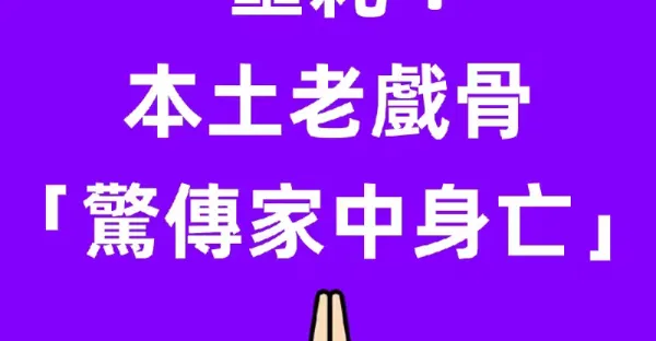 噩耗!本土老戲骨「驚傳家中身亡」!