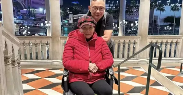 80歲白韻琴赴美探親,坐輪椅出行為母親掃墓,51歲兒子在當地生活