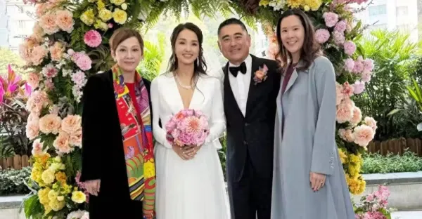 鄭嘉穎賀53歲富貴表妹再婚!一家赴宴兩子扮花童,周潤發前妻到賀