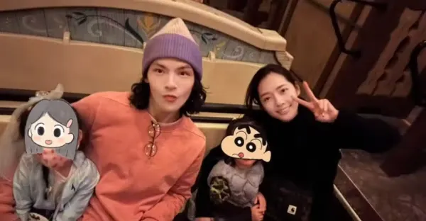 郭碧婷一家四口出遊,向佐穿搭比老婆還粉嫩,二胎兒子長發搶鏡