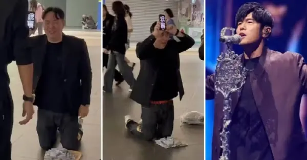 沒周杰倫門票!網紅地上「放一疊98萬現金」,下跪大巨蛋前求1張票,背後原因有洋蔥