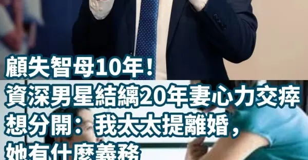 顧失智母10年!資深男星「結縭20年妻心力交瘁」想分開:「我太太提離婚,她有什麼義務要為婆婆犧牲人生?」