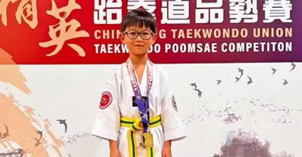 胡杏兒大兒子參加跆拳道比賽,奕霆第一次參賽就拿第一,真的好棒