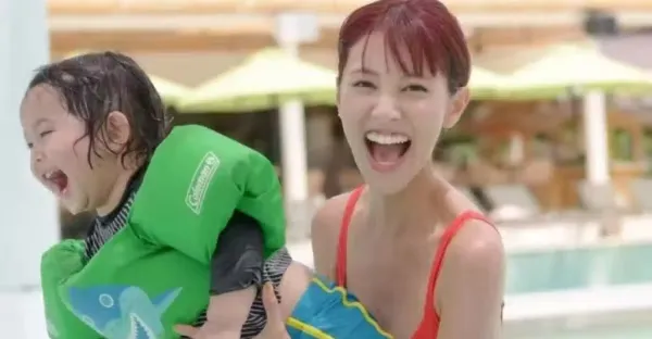 TVB花旦浴袍照大曬好身材!帶兒子游泳輕鬆舉起寶貝不費力,穿泳裝瘦成「竹竿」