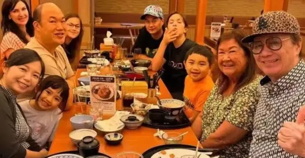 許冠傑慶祝76歲生日,三代同堂外出吃飯,混血雙胞胎孫子長發披肩