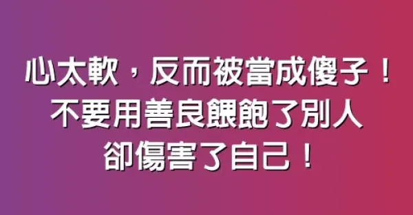 心太軟,反而被當成「傻子」!不要用善良餵飽了別人,卻傷害了自己!