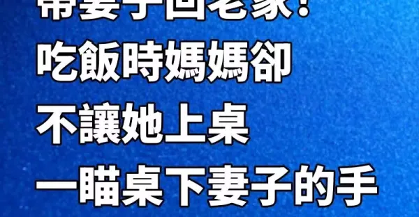 帶妻子回老家!吃飯時媽媽卻「不讓她上桌」,一瞄桌下妻子的手「我氣炸當場翻桌」…