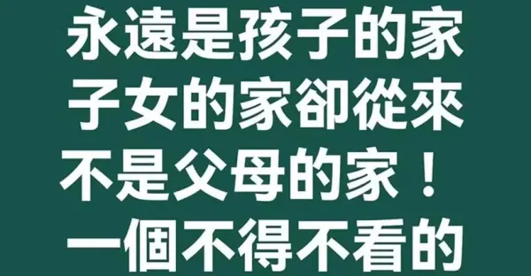 父母的家永遠是孩子的家,子女的家從來不是父母的家