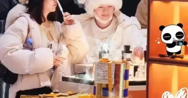 全紅嬋水靈靈的出現在商場購物、喝果茶